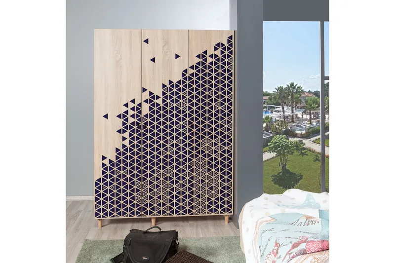 Vaatekaapin värin nimi on ruskea/sininen, mikä luo kauniin ja raikkaan ilmeen huoneeseen. Voit valita, haluatko korostaa kaapin sinistä vai ruskeaa sävyä sisustuksessasi.