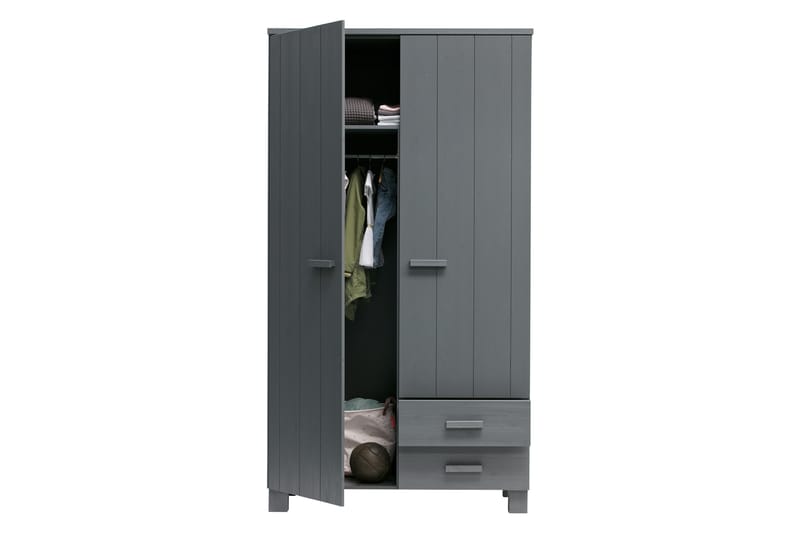 WOOOD Vaatekaappi Mitchell 2 laatikolla 111 cm Teräksenharmaa mänty