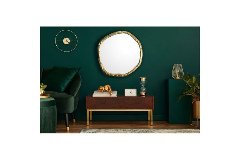 - EI AINA SUORAVIIVAISTA - Lisää ripaus eleganssia asuintilaasi tällä seinäpeilillä, joka vaikuttaa epäsäännöllisellä muodollaan ja kultaisella värillään.
