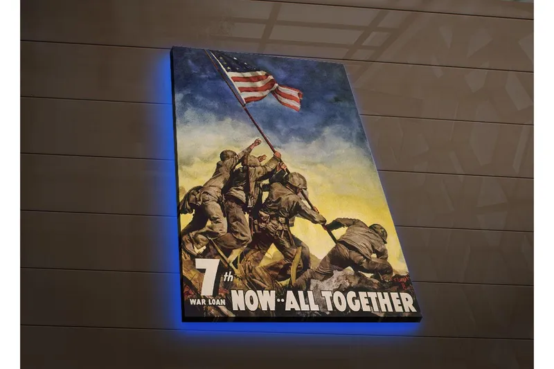 Canvas-taulu LED-valaistuksella 70x45 cm - Sotilaat nostavat lippua taistelun aikana