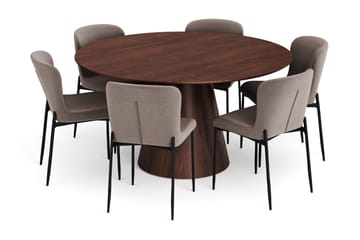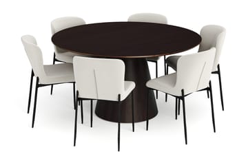 Siena-ruokailuryhmä, pyöreä 150 cm, savustettu tammi, 6 Elsie-ruokatuolia