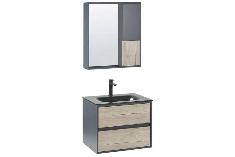 Kylpyhuonekaappi ja peili Navarra Musta, Hopea, 60x14x60 cm