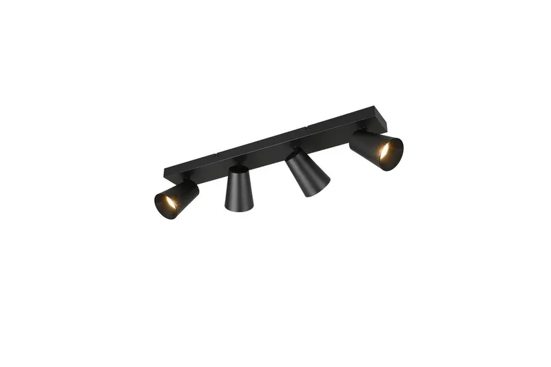 Tyylikkäässä Sharp-spottivalaisimessa yhdistyvät mattamusta väri ja kupujen sisäosien kullan sävy. Valaisimen mukana toimitetaan kultaiset ja mattamustat lamppukupujen sisäosat. Valaisimen ilmettä on siis mahdollista muuttaa koristeosien väriä vaihtamalla. Valoa on mahdollista kohdistaa spotteja kääntämällä ja Sharp sopiikin hyvin kodin eri tiloihin, kuten olohuoneeseen tai eteiseen. Valaisin voidaan kiinnittää seinään tai kattoon. Metallisen valaisimen leveys on 64 cm ja korkeus on 16 cm, kupujen halkaisija 8 cm. Valonlähde 4xGU10, eivät sisälly mukaan.
