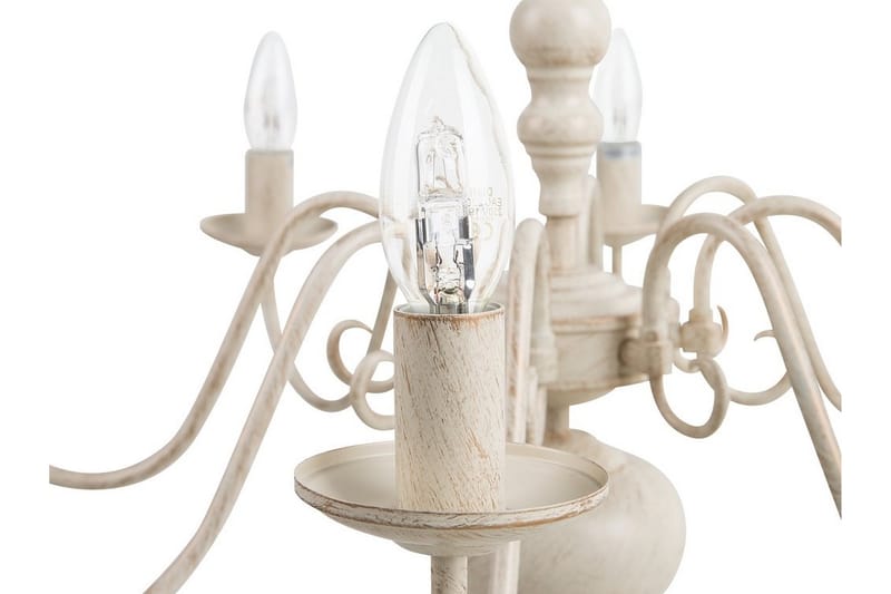 Vintage-tyylinen kattokruunu. Tuo klassista tyyliä tilaan kuin tilaan tällä tyylikkäällä kattokruunulla. Sen haalistunut viimeistely ja klassinen muoto saavat sen sopimaan täydellisesti perinteisiin ja vuosisadan puolivälin tyylisiin sisustuksiin. Lisäksi se toimii näyttävänä yksityiskohtana moderneissa kodeissa. Kahdeksalla polttimolla varustettu kattokruunu luo tilaan kirkkaan hajavalon. Kattokruunu on valmistettu laadukkaasta ja kestävästä raudasta. Ripusta se ruokapöydän ylle tai makuuhuoneeseen tuomaan rustiikkista charmia ja viihtyisyyttä.
